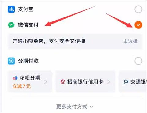 4、如果觉得每次都要输入密码来支付很麻烦,可以在支付时开通【小额免密】支付功能。