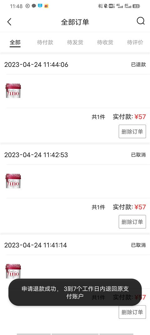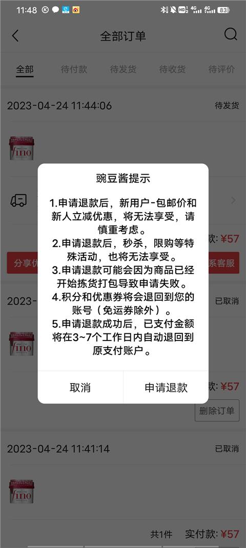 申请退款后,新用户-包邮价和新人立减优惠,将无法享受,请慎重考虑。
