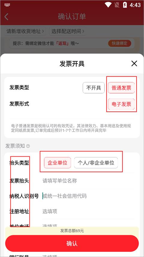 •选择好发票类型和发票形式,根据个人情况选择抬头类型,以及下方的各类信息尽量填写完整