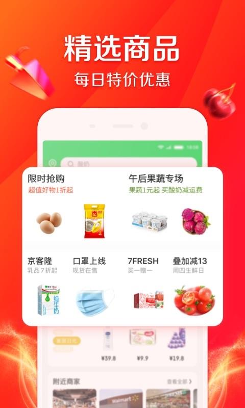 京东到家最新版本功能1.精选精品,惠民价,用APP下单,无需排队,为你省钱省心省力。
