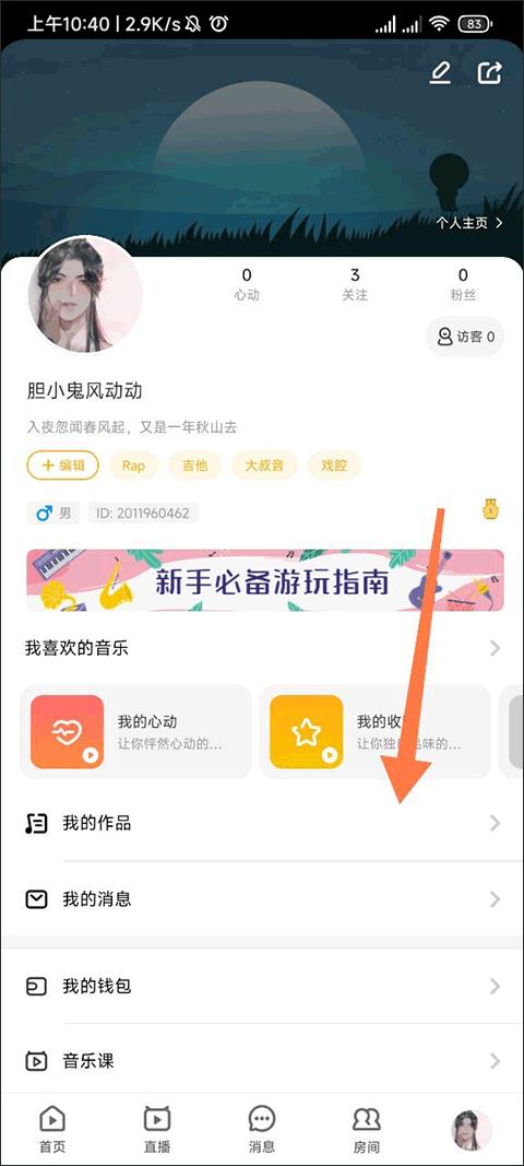 进入到个人界面后,大家可以查看自己关注的用户还有关注了我们的用户,还有一些自己收藏了的音乐作品,我们点击列表上的【我的作品】就可以查看我们自己发布的音乐作品了。