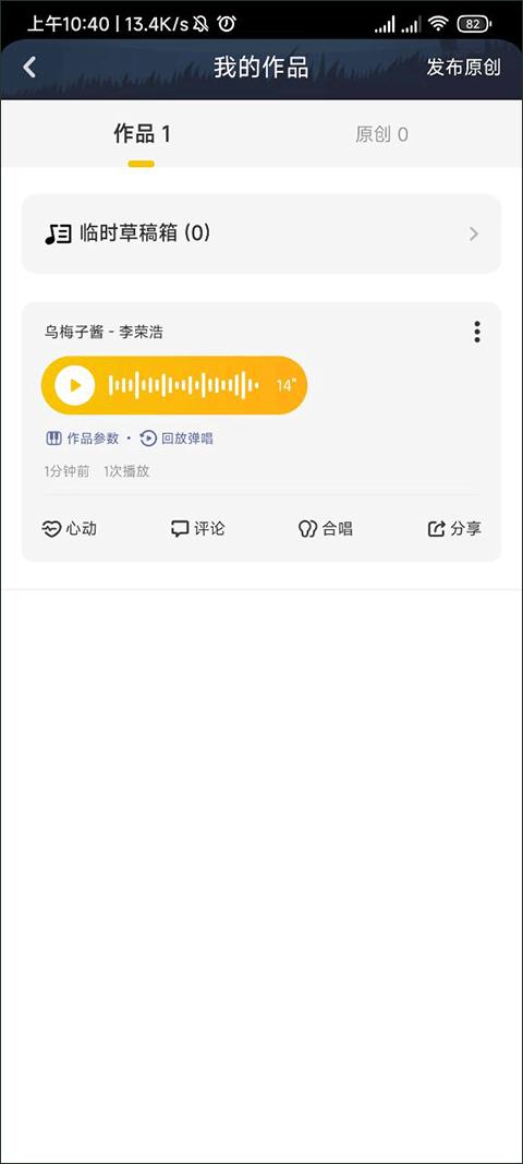 可以看见小编现在已经发布了一首音乐作品,这个时候我们点击一下这个作品进入详情界面。