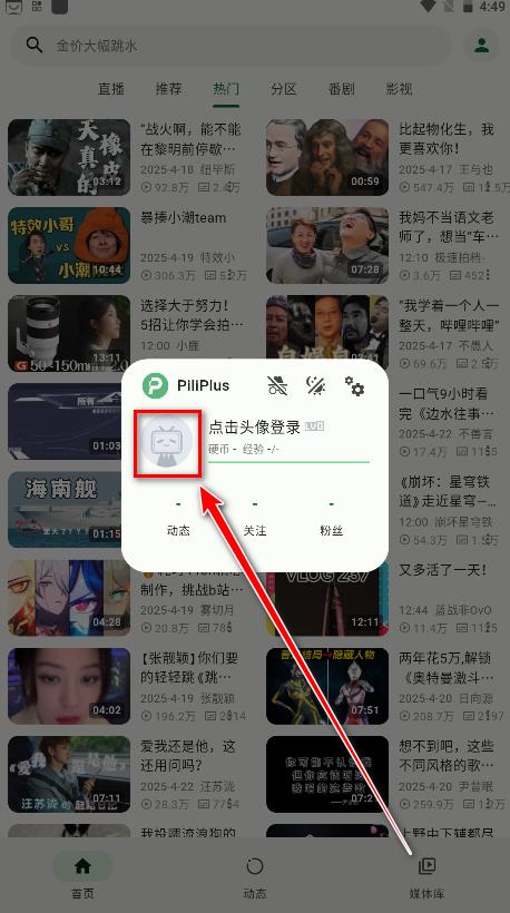1.打开PiliPlus,点击右上角的头像。