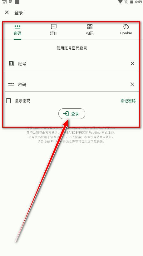 3.如下图所示,这款软件支持账号密码、短信、扫码登录,小编给大家演示的第一种方式,输入账号和密码,然后点击登录即可。
