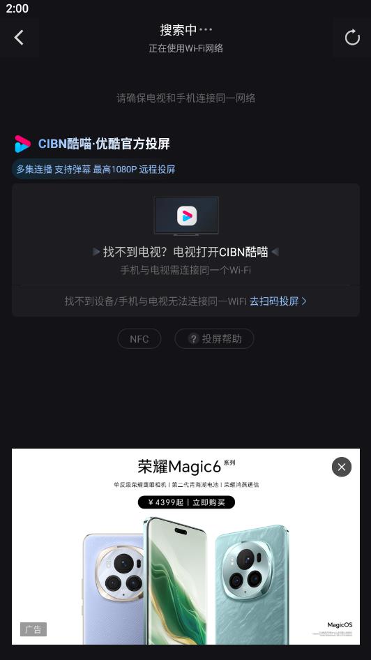 等待搜索电视,然后选择自己的电视即可