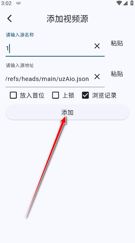 7.填写源名称和源地址(https://ghproxy.cfd/https://raw.githubusercontent.com/YYDS678/uzVideo-extensions/refs/heads/main/uzAio.json),然后点击添加。