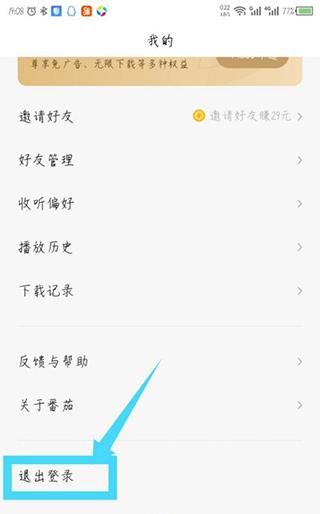 2、在我的页面,往下滑动屏幕到底部,点击底部的退出登录