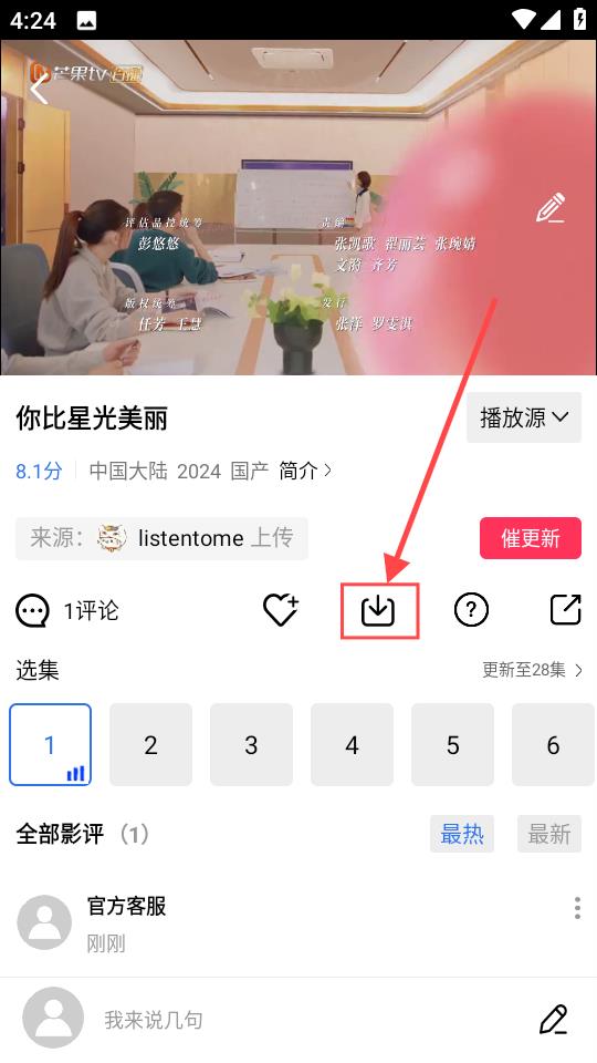 6、点击下方箭头所指的图标,可以直接缓存当前的影视内容。