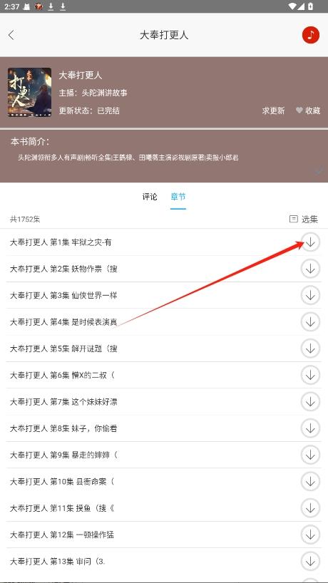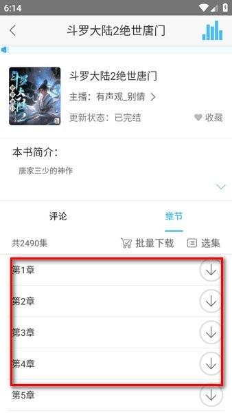 4.点击章节右侧的下载按钮即可下载缓存,在无网络的时候也能听书。