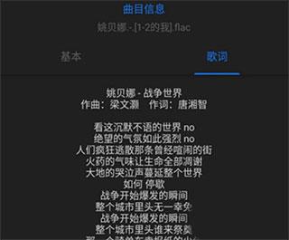 之后在播放页面中,在文件信息对话框可以将歌词显示为文本样式。
