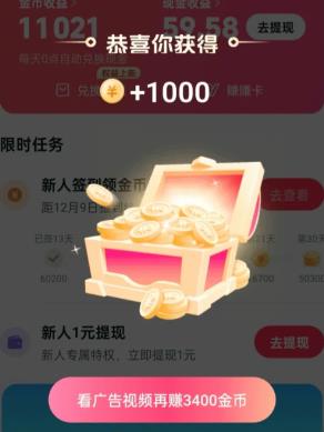 4、成功填写邀请码后你就可以获取金币!