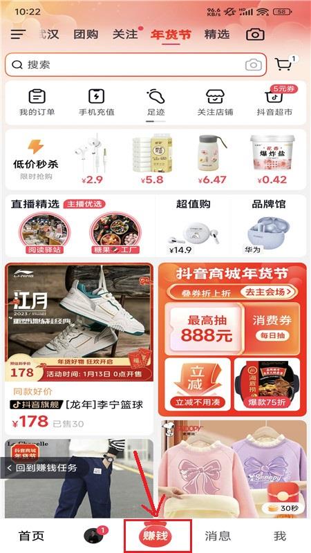 2、打开软件登录上自己抖音账号,找到中间的赚钱图标;