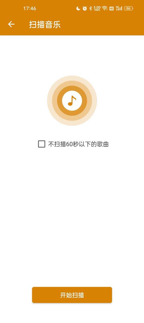 3、进入之后给予软件访问权限然后对音乐进行扫描;