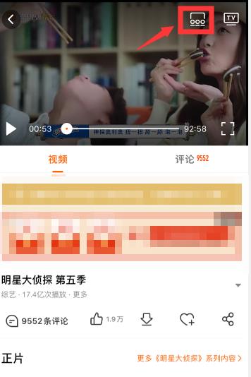 2、点击视频右上角放映室的图标,如果是在全屏模式也是一样的,视频上方有个放映室图标