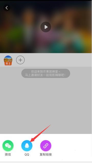 6、随后会调起QQ,选择一个QQ好友后,点击发送即可,好友可以根据你发送的链接进入到你的放映室一起看视频
