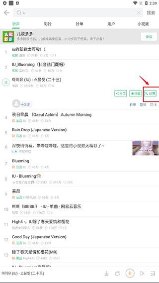 2、你可以在搜索框中输入自己想要作为铃声的歌曲进行搜索;