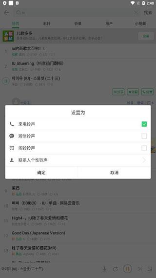 4、用户可选择设置为来电铃声或短信铃声等;