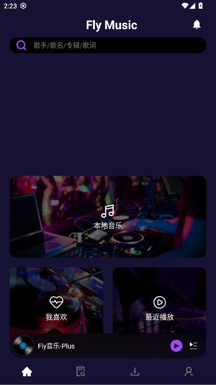 1.打开fly音乐plus,点击首页的搜索框。