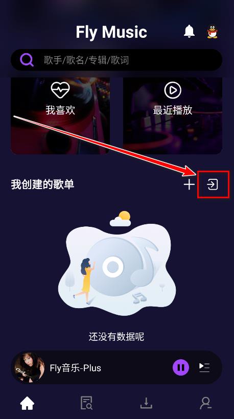 1.打开fly音乐plus,点击导入图标。