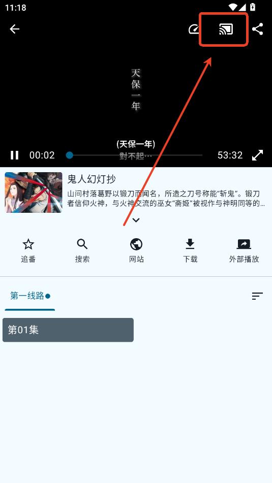 2.点击右上角TV投屏。