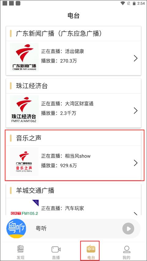 2、如果你想要观看电台直播,需要注意右边是否显示“直播”这几个字,选好你想听的电台直播;