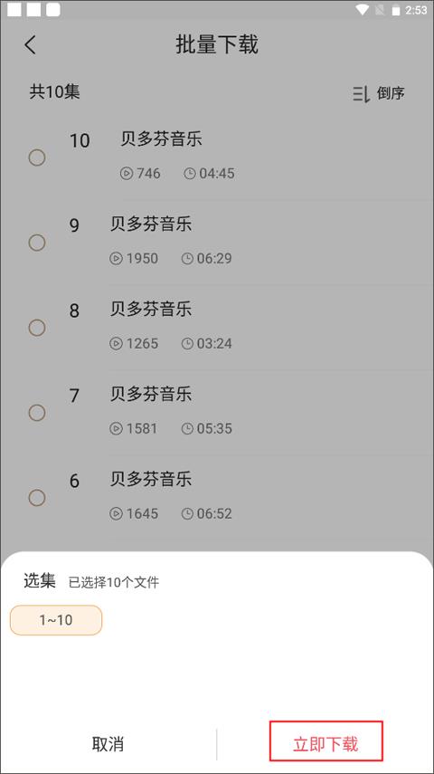 3、在节目详情页中,你可以点击“批量下载”功能键,选择你要下载的集数,点击立即下载。
