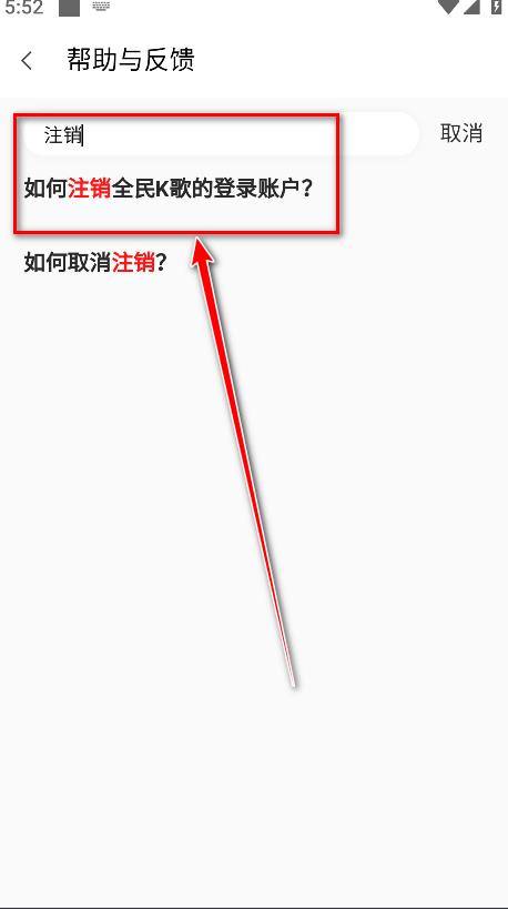 5.输入注销并搜索,点击如何注销全民k歌的登录账户。