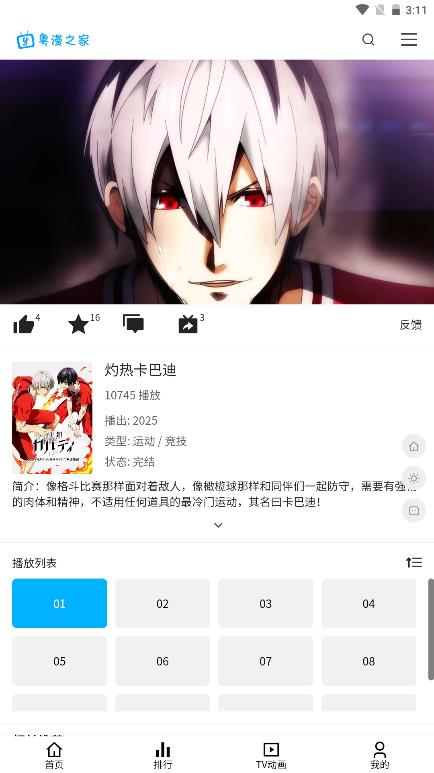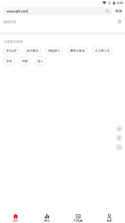 1.打开粤漫之家,可以看到有很多推荐的资源,先点击放大镜。