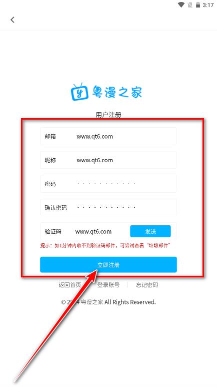 4.请按照要求输入以下的信息,然后点击立即注册即可。