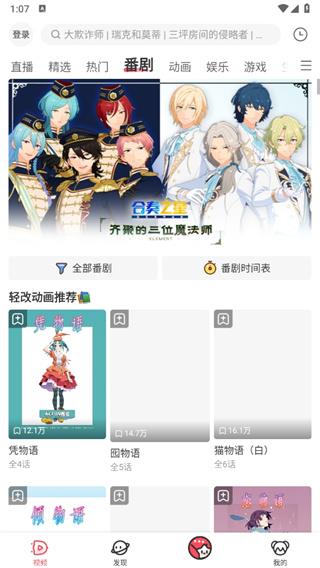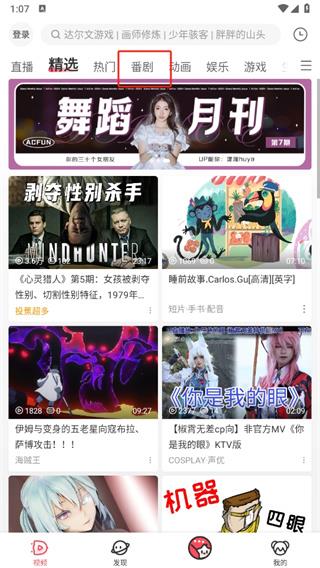 1、首先打开acfun软件,进入到首页中后切换到【番剧】页面;
