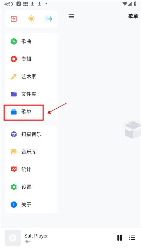 2、在展开的选项中,点击歌单;