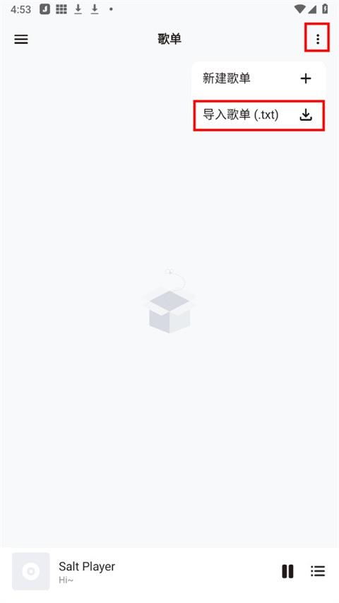 3、点击右上角的三个小点,点击导入歌单;