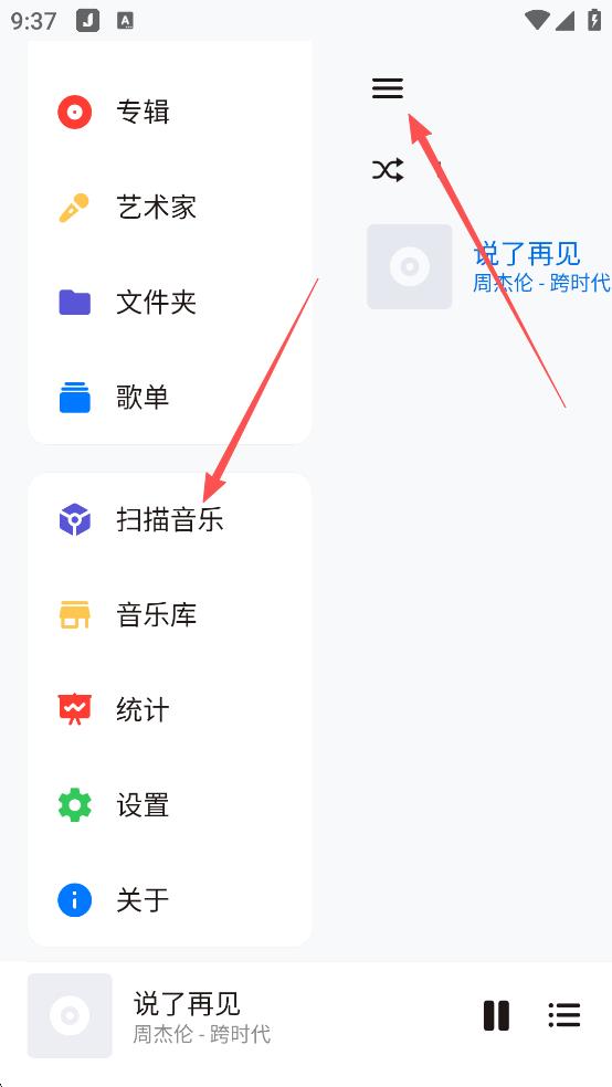 1、点击功能菜单后,再点击扫描音乐