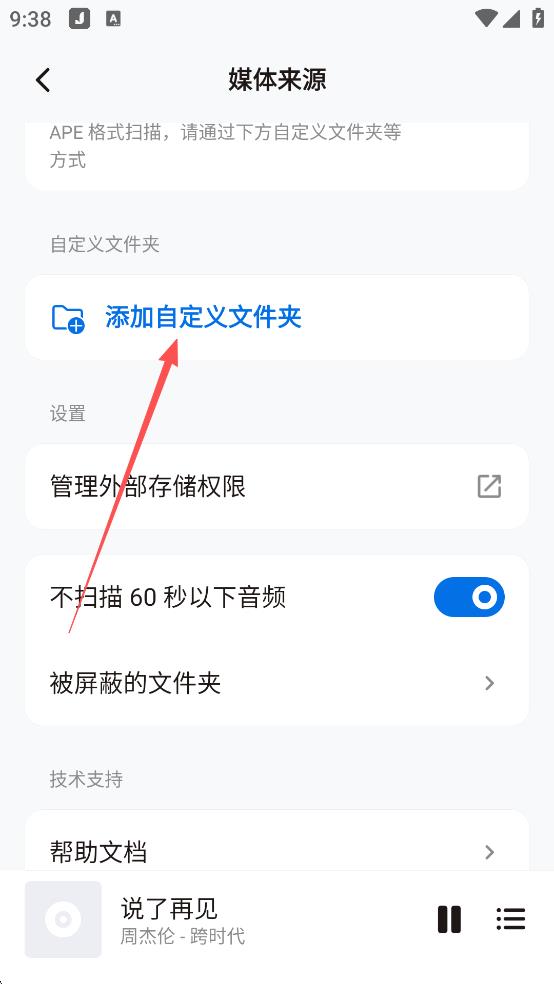 3、还可以添加自定义文件夹来获取本地音乐