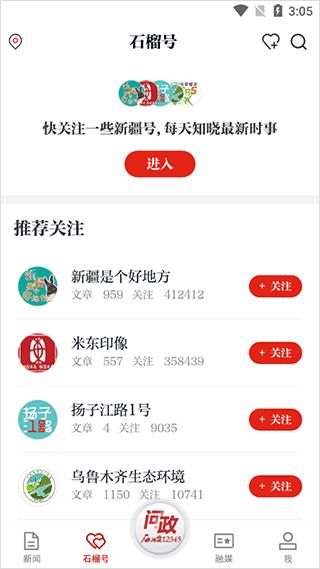 2、在石榴号中,用户可以关注一些新疆订阅号,了解新疆各地动态;