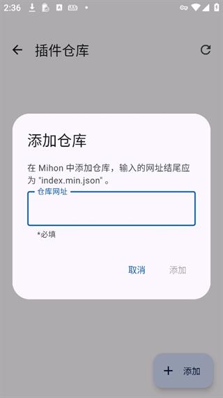 输入index.min.json结尾的插件仓库网址,第三方插件仓库地址如下: