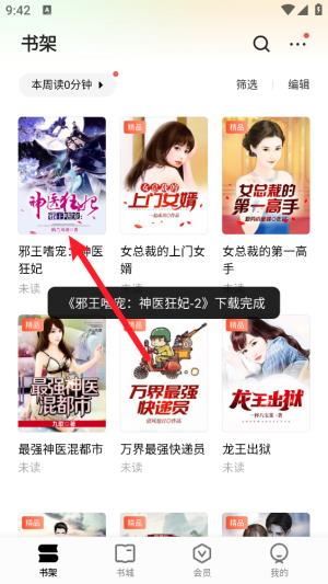 3、返回主页切换至书架板块,如图,就可以看到所加入的小说资源。