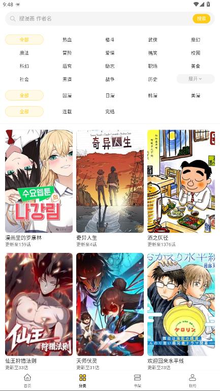 1.在首页选择不同的漫画分类,如“热血”、“爱情”、“悬疑”等,快速找到自己喜欢的类型。