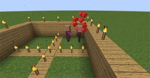 当两个村民都满足意愿条件后,头上会出现红色心形粒子,进入繁殖模式。