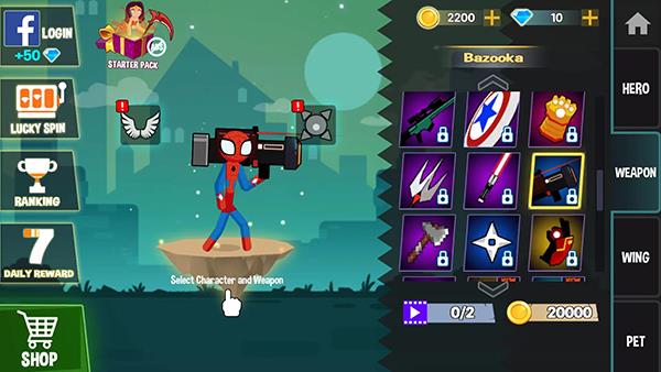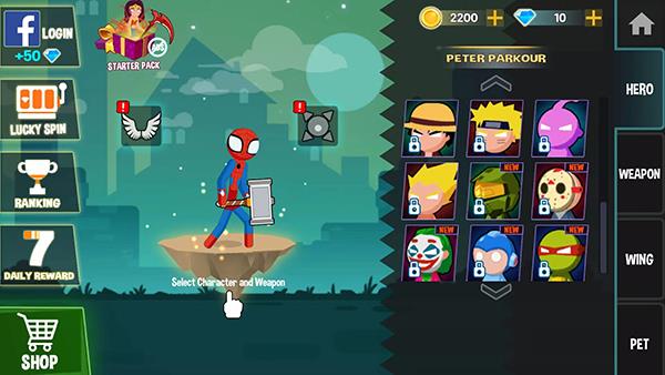 波比vs火柴人中还有丰富的角色元素和武器元素,大家熟悉的鸣人、蜘蛛侠、钢铁侠、露露公主、忍者神龟等等都可以解锁体验,每个角色都有不同的形态造型和攻击方式。同时,游戏中不仅有长剑、锤子、飞镖、弓箭等经典的冷兵器,还有电锯、手雷以及大炮等强力的现代武器,搭配喜欢的角色将带给你更加有趣的游戏体验。