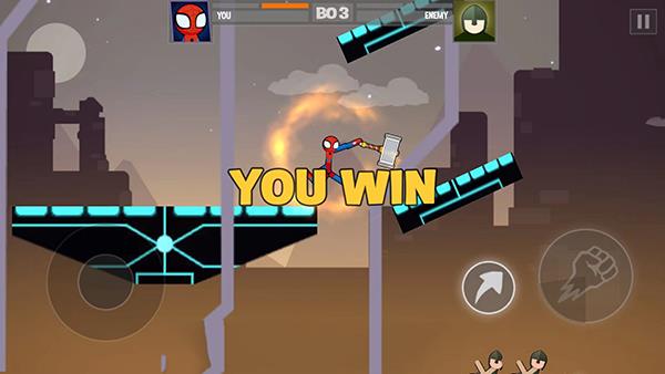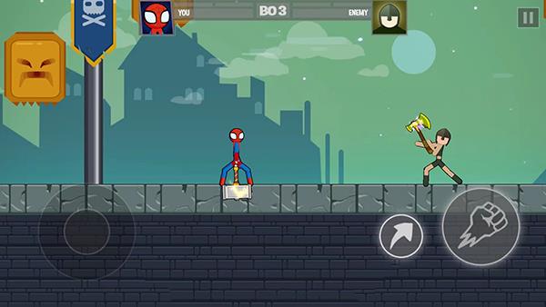 波比vs火柴人最新版是一款超带劲的火柴人动作格斗闯关游戏,游戏画风魔幻卡通,战斗特效酷炫十足,玩起来很过瘾。玩家通过摇杆操控角色移动,既要躲避对手攻击,还得用装备给对手致命一击,每次对战都会切换新地图,场景还能灵活利用,赢了比赛还有丰厚奖励拿。