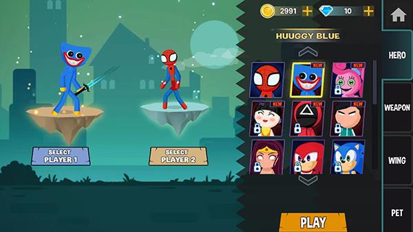 11、选择双方的角色后,点击【PLAY】选项,就进入双人对战中了,以上就是波比vs火柴人最新版的玩法。