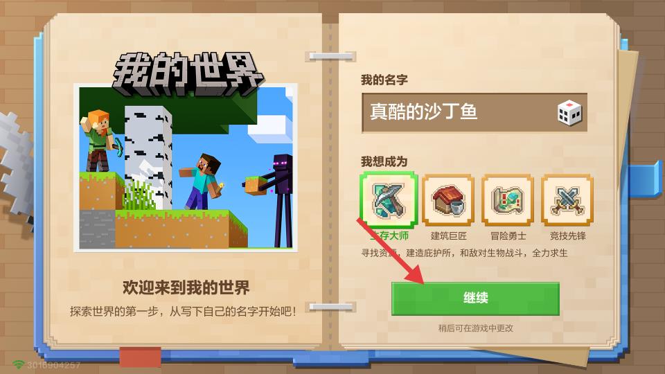 我的世界游戏角色创建介绍1、自由创建我的名字和选择发展方向。