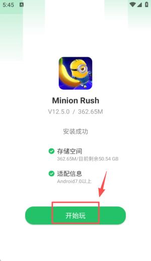 小黄人快跑游戏开局与关卡操作指引1、在游戏安装完成界面,点击下方的 “开始玩” 按钮,进入游戏的初始剧情与操作引导环节。