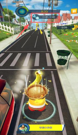 3、进入关卡后,界面上方会显示倒计时(共 43 秒),控制角色移动以收集场景中的香蕉道具。