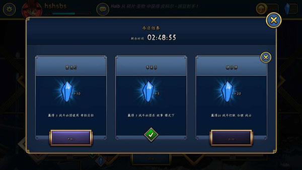 1、任务:在游戏的大厅页面点击任务可以查看每日任务,这里每天会为大家派出三个任务