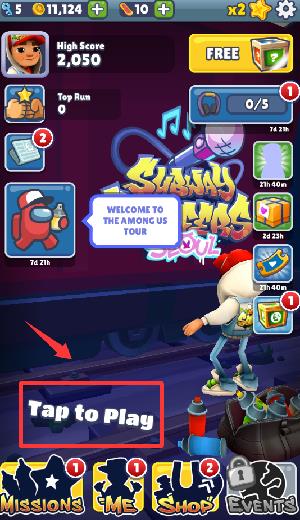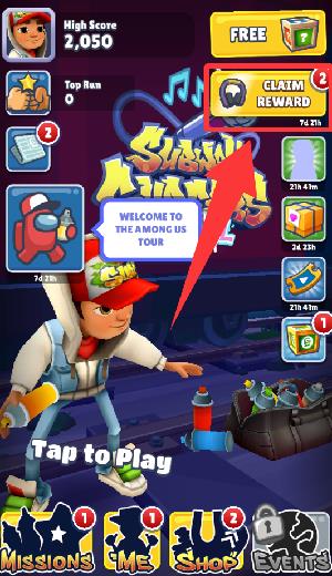 地铁跑酷国际服免费新手教程1、进入游戏界面点击红色框框里领取奖励。