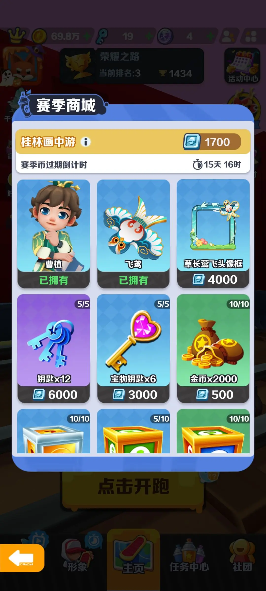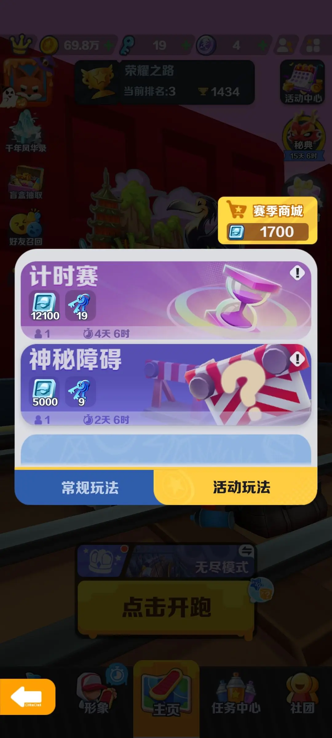 每日无尽模式,道具赛,分数赛分享至wb可获得1条钥匙,总计三条钥匙
