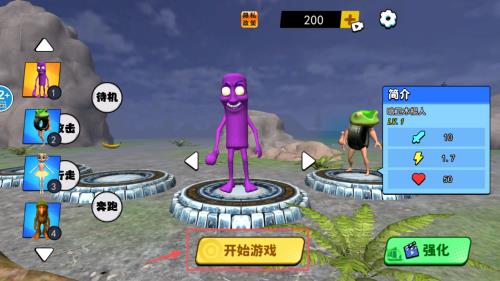 妖怪大变身怎么玩1、进入游戏后,先熟悉界面哦。你可以看到紫色木棍人站在中间,左侧有“待机”、“攻击”等动作按钮,底部点击“开始游戏”就能进入世界了。