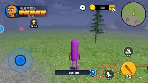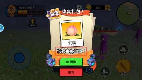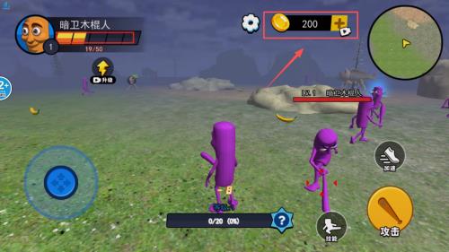 2、操作角色移动和战斗吧。画面左侧的蓝色摇杆控制方向记得在草地上移动时,可以收集像香蕉这样的道具呢。
